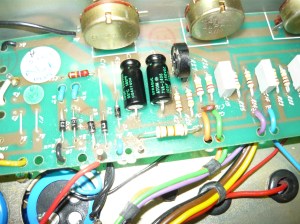 The other important job to be done was replacing the 2 x bias supply capacitors, for this job the very best components are obviously the Sprague Atom 10uF/150v caps, which fit neatly into the available space on the board. After a rebias of the output valves, finally the amp is subjected to a power output test, burn-in test and electrical safety test.