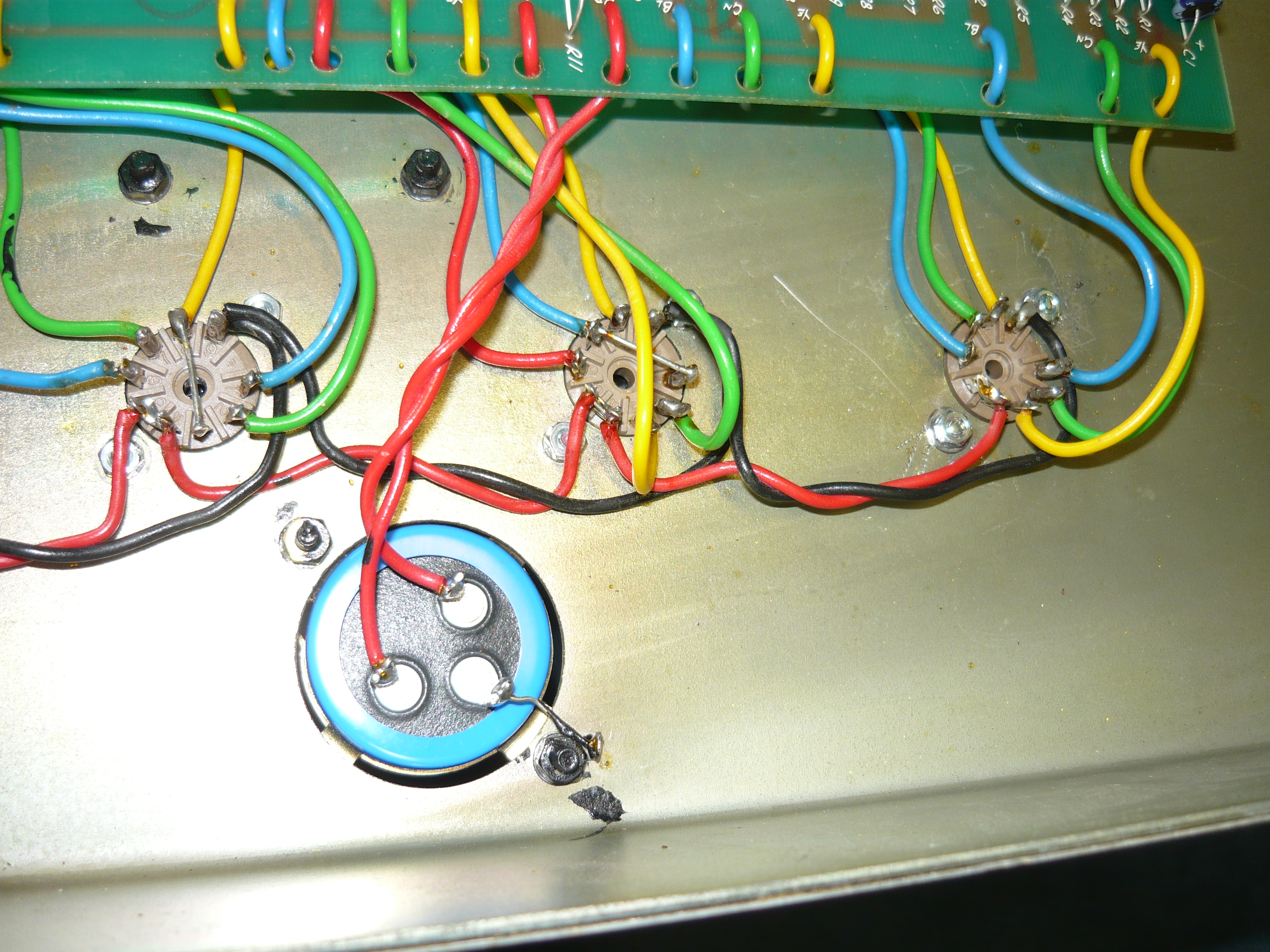 Scott brought the amp in to bring it up to performance standard to facilitate rehearsals for the Van Halen tribute. The original intention was to install 3 x new 9-pin valve sockets to replace the 3 x really crusty sockets which were installed some years back by a less than scrupulous repairer.