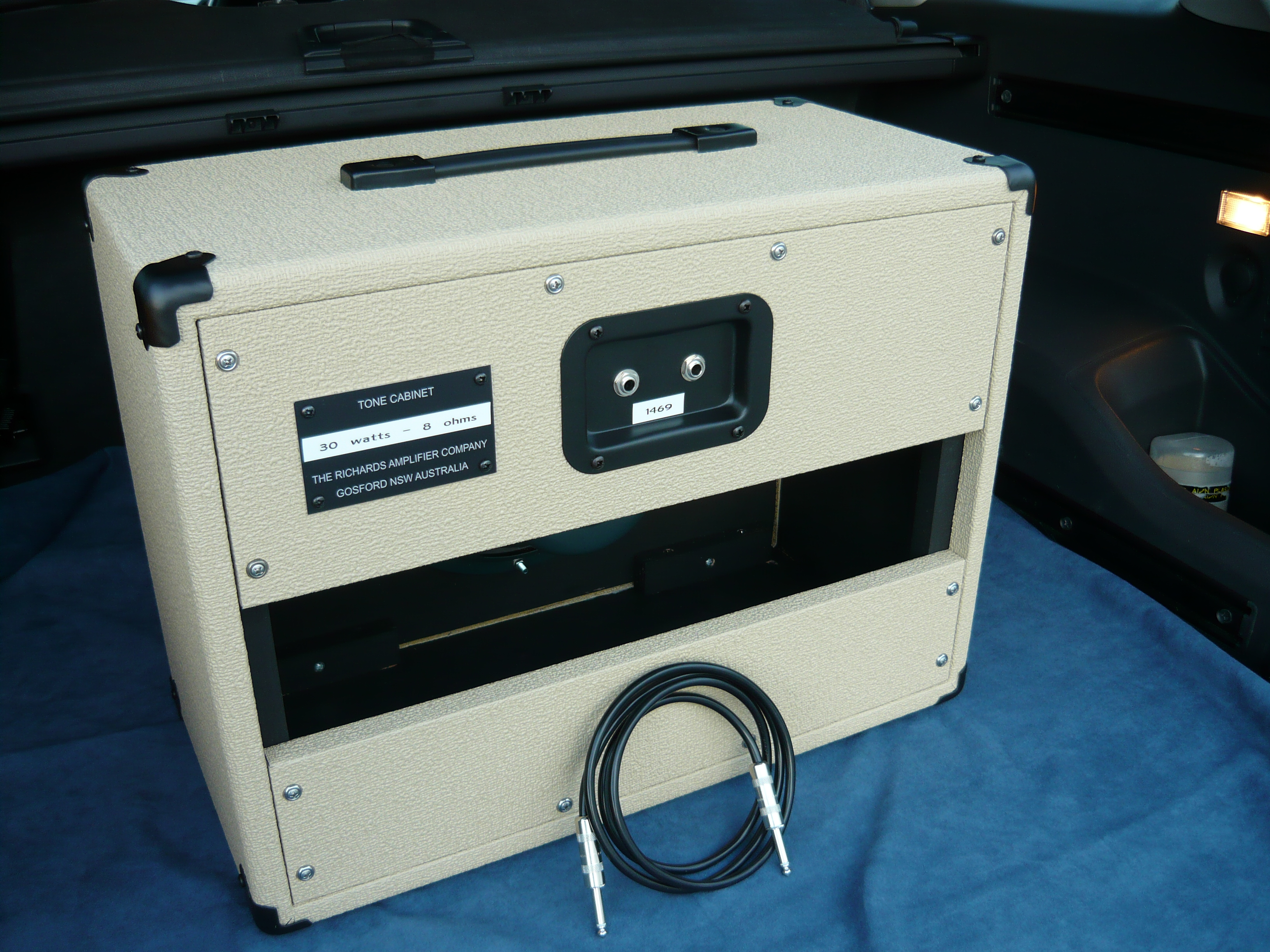 Our good customer ‘Bill’, ordered this particular 1×10 cab loaded with a Weber 30W alnico magnet model, to match up with his 18W 6V6 model Blue Mood series amp, by the Richards Amplifier Company – Australia. Bill is looking to recreate the great late 50’s/early 60’s sounds from the West Coast USA, so this amp & cab are a great match.