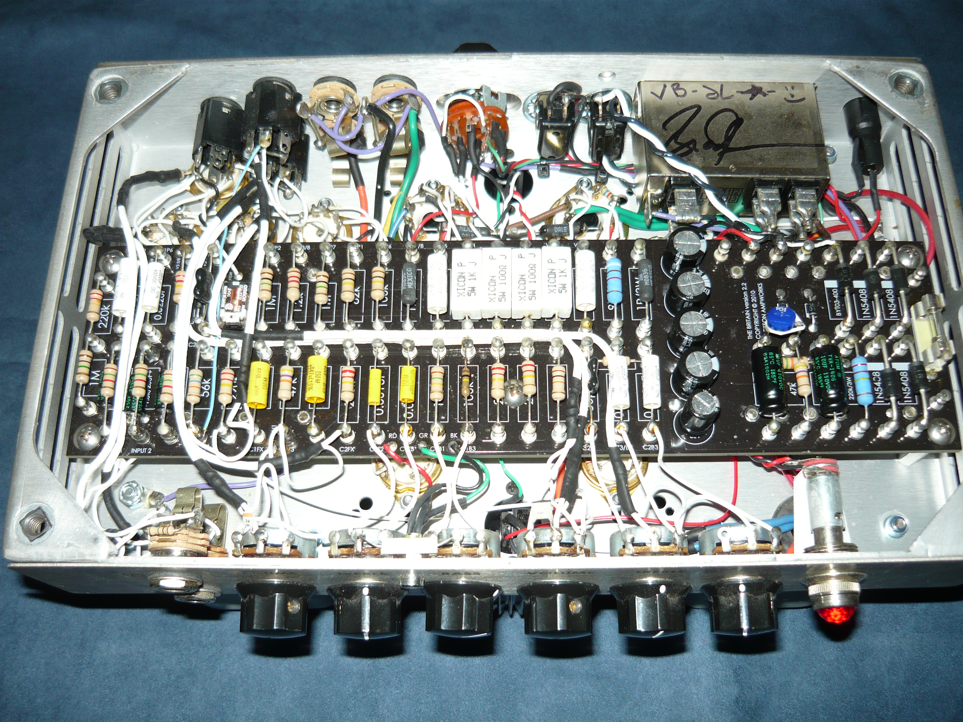 Finally, we were happy with the end result and our customer was pleased to get his amp back, working correctly again with unwanted noise at a minimum. You can see from the photo to the right that the amp is indeed hand-wired and the chassis layout is very tight indeed. Access to some components is limited or not possible at all without stripping out the electronics from the chassis.