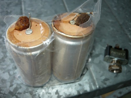 the ruptured pair of high voltage filter capacitors