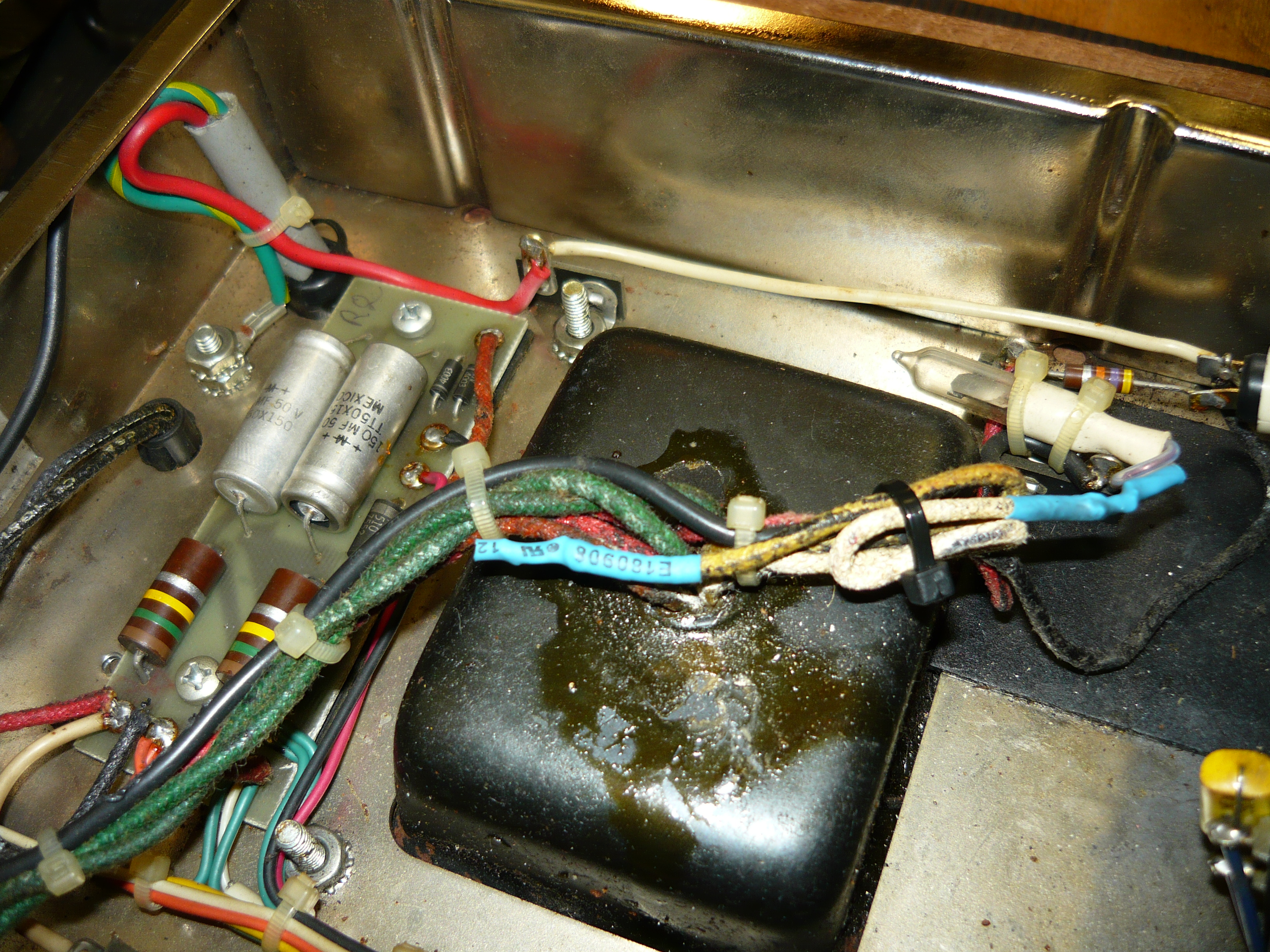 You can see from the thumbnails there are quite a number of outstanding service issues to be resolved. Firstly, there was some doubt as to whether the power transformer itself was 100% functional, as it had temporarily been rewired for half-power only. The wiring and general internal appearance of the transformer looked pretty crusty. I had to suss out the colour code for the primary connections in order to make any sense out of the situation.
