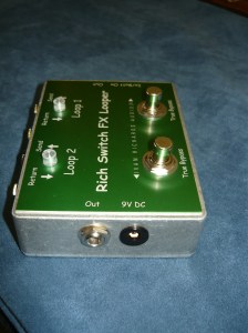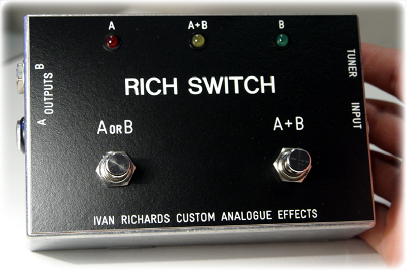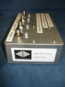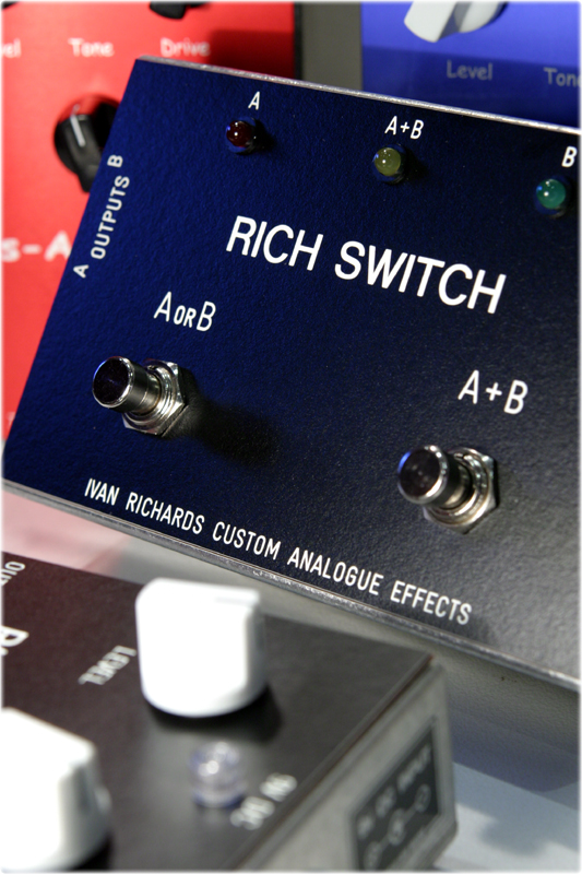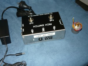 Far from being just another passive A/B box, the Rich Switch pedal utilises low-noise active (buffer) circuitry and a Harbuch broadcast/studio quality line transformer. The size of this transformer can be judged from the photos – it is definitely not a cheapo component sourced from the far east, but manufactured over a period of many years here in Sydney, Australia, by the fine Harbuch transformer company.