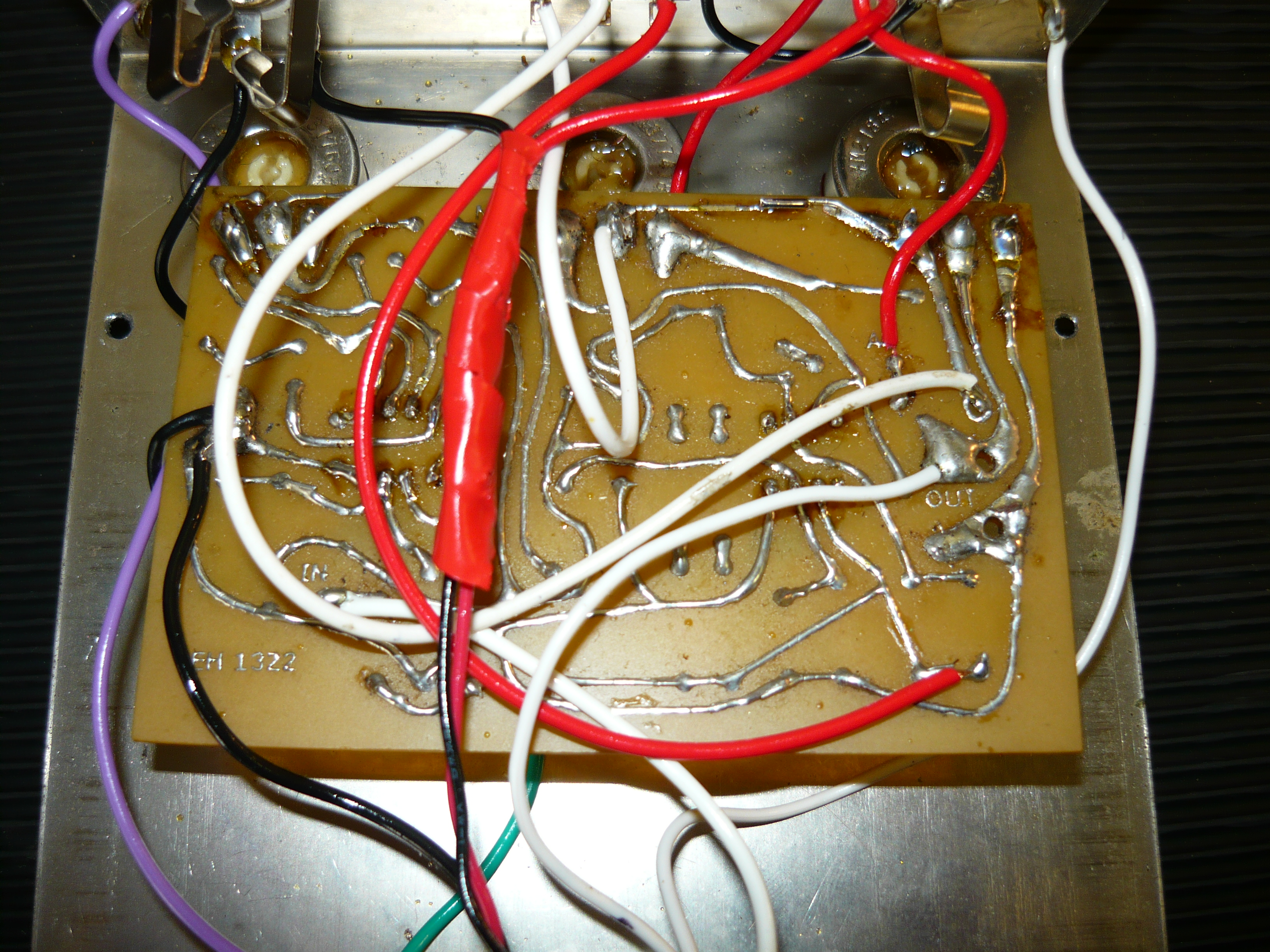 Adam shipped his LBM down to us from up in Lismore, Northern NSW. The ongoing problem with his pedal has been massive amounts of hiss – the hiss is of a “whooshing” nature, and renders the pedal unplayable. This pedal has been the subject of attempted repairs at least twice previously. Our immediate impression from trying out the pedal was that there was some instability in the circuitry in addition to the excessive levels of white noise. Please note – there is always going to be some white noise with the LBM as the design is very similar to a vintage Big Muff with the “Fuzz” control turned fully clockwise.